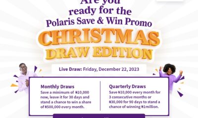 …100 Nigerians to be rewarded_ Lagos, Nigeria: December 21, 2023 — Polaris Bank, Nigeria’s Leading Digital retail will hold a festive Save and Win draw that...