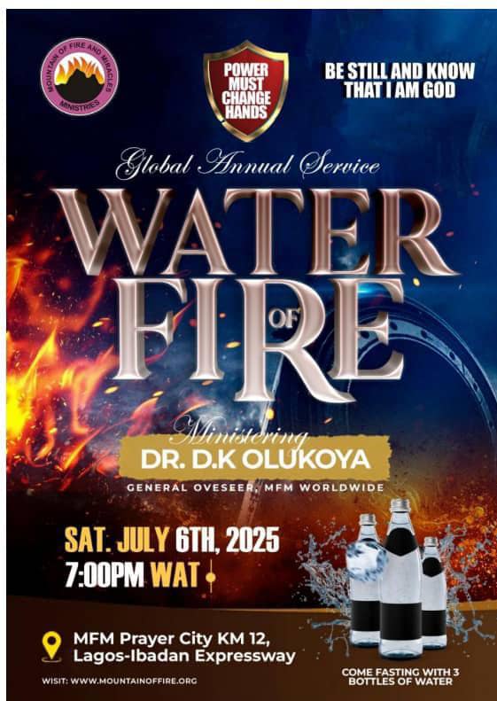 the Mountain of Fire and Miracles Ministries, is slated to hold on the 5TH OF JULY 2025 at the prayer city kilometer 12 Lagos Ibadan Express Way Nigeria.
