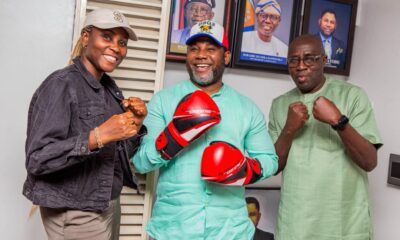 Caption: Director-General of the Lagos State Sports Commission, Mr. Lekan Fatodu, with Flykite Productions’ Business Development Manager, Folasade Oladokun, and Chief Operating Officer, Bamidele Johnson, during...